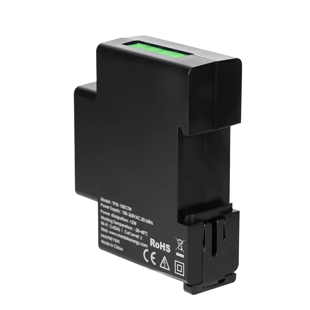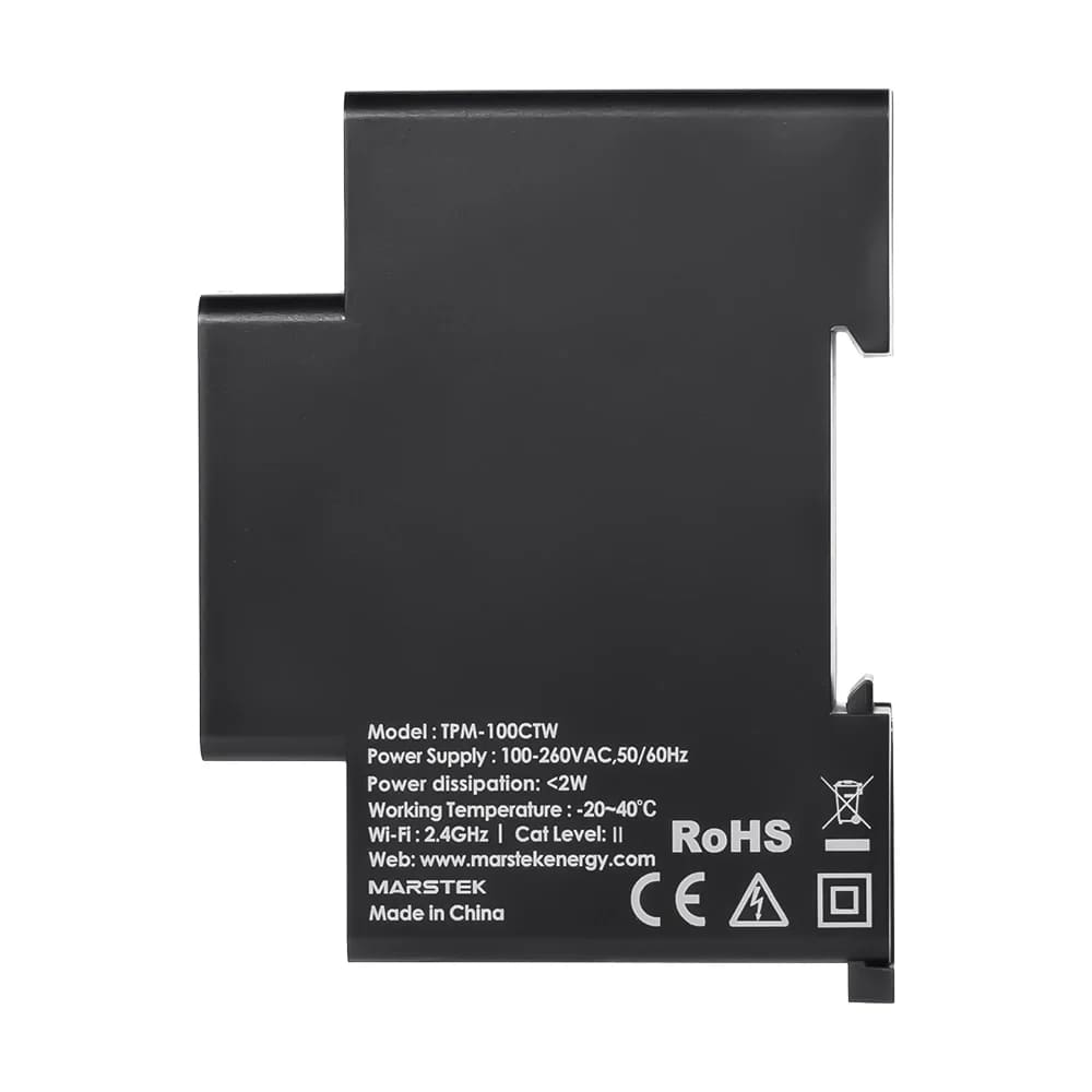 Розумний трифазний лічильник електроенергії з монтажем на DIN-рейку; вимірює напругу, струм та потужність; діапазон вимірювання напруги 100-260 В, струму 5-100 А, точність вимірювання ±1%; віддалене керування через застосунок MARSTEK (підключення через Wi-Fi 2.4 ГГц, Bluetooth 5.2); інтерфейси для підключення 3 трансформаторів струму; власне енергоспоживання до 2 Вт; рівень захисту від перенапруги CAT II (до 280 В AC на фазу);