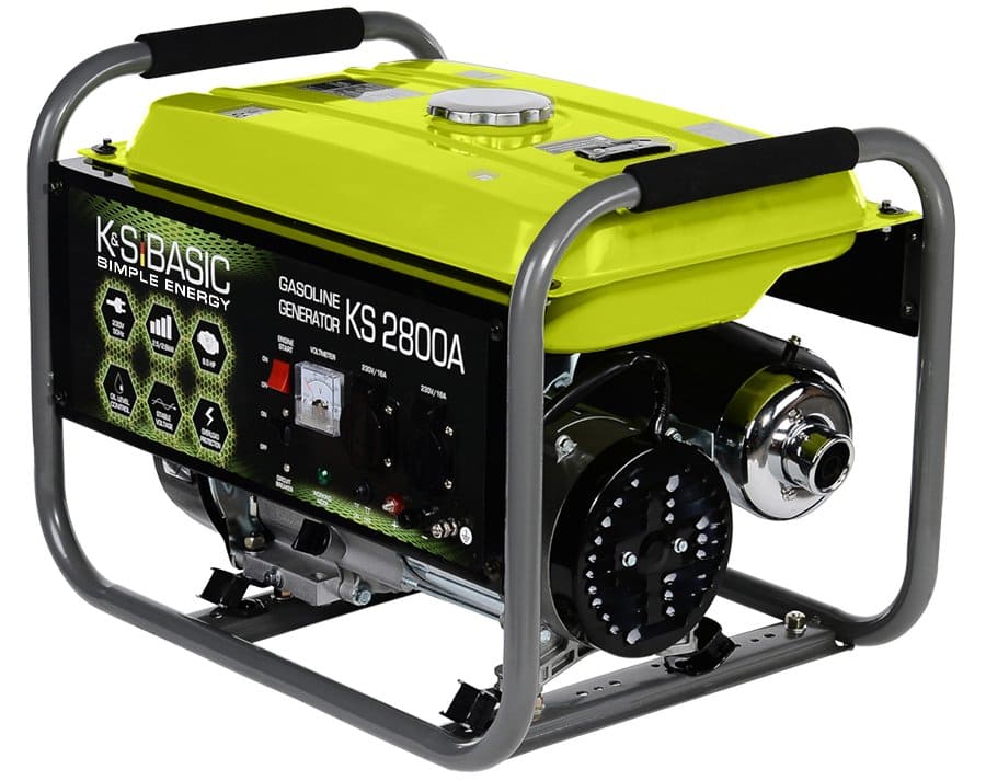 Бензиновий генератор KSB 2800C. Напруга - 230 B. Спеціальні функції – Бензин. Максимальна потужність - 2.8 кВт. Номінальна потужність - 2.5 кВт. Тип запуску – Ручний. Розетки - 2 x Schuko 230 V.