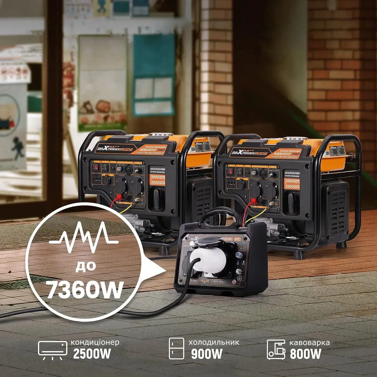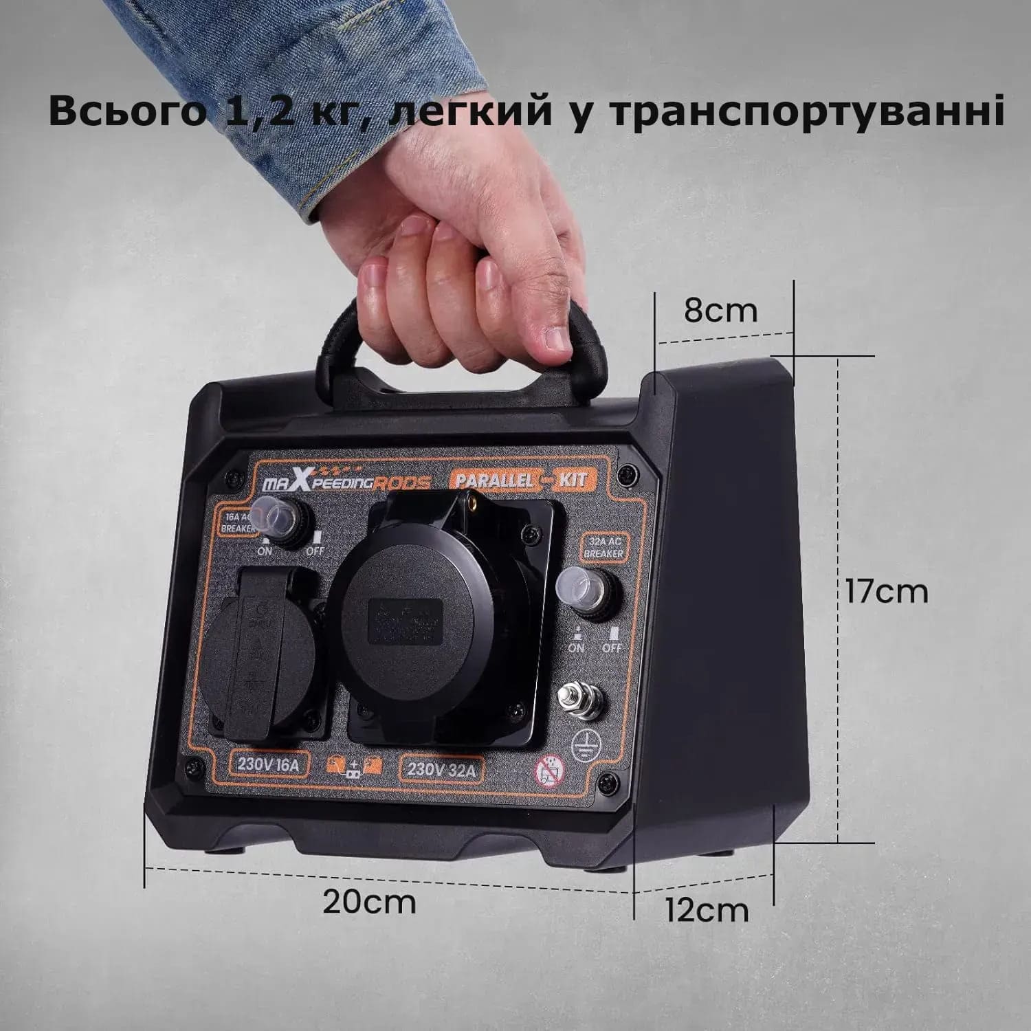 Блок для паралельного підключення генераторів MaXpeedingRods — це надійне рішення для тих, хто хоче збільшити потужність електроживлення, поєднавши два інверторні генератори в єдину систему. Пристрій дозволяє отримати до 7,4 кВт сумарної потужності через одну розетку, що робить його ідеальним для забезпечення роботи енергоємного обладнання вдома, у майстерні чи під час виїздів на природу. Паралельне підключення здійснюється легко та безпечно — блок автоматично синхронізує роботу генераторів. Втрата потужності при цьому мінімальна — лише 0,2 кВт. Пристрій сумісний із популярними моделями MaXpeedingRods MXR1500, MXR2300, MXR3500, MXR3500s, MXR5500 та MXR6000-PRO. Корпус виготовлений із міцного пластику, має компактні розміри та захист від температурних коливань від -50°C до +50°C. Максимальний струм — 32 А, що забезпечує стабільну роботу навіть при високому навантаженні. Блок паралельного підключення MaXpeedingRods — це простий і ефективний спосіб отримати більше енергії тоді, коли вона справді потрібна.