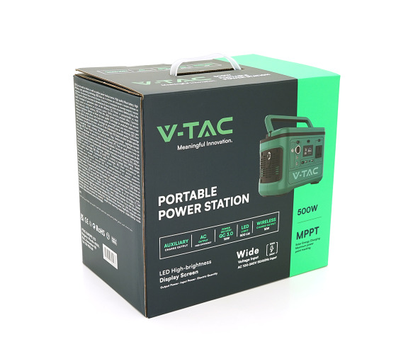 Зарядна станція V-TAC VT-606, 500W 26.2Ah 21.6V 568Wh; Зарядний пристрій; Посібник користувача; Автомобільний зарядний кабель (прикурювач)