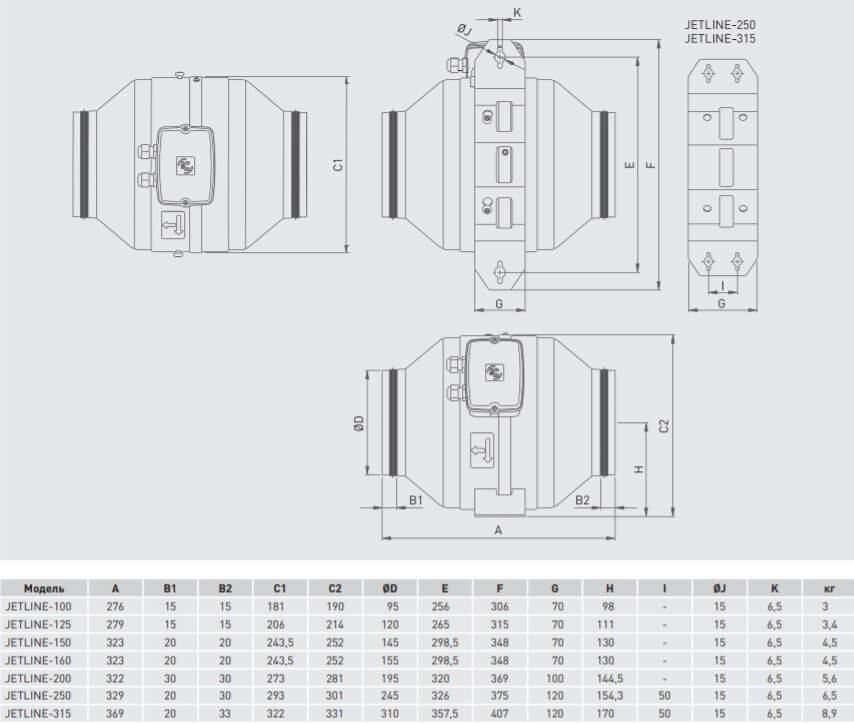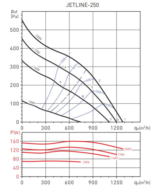 Канальные вентиляторы Soler&Palau Jetline обладают высокой производительностью, низким уровнем шума. Низкопрофильный корпус из оцинкованной стали и размещение клеммной коробки сбоку, позволяет установить его в ограниченном пространстве. Специальная конструкция крыльчатки и диффузоров обеспечивает высокую эффективность и снижение уровня шума. Патрубки подключения воздуховодов оснащены резиновыми уплотнителями. Двигатель крепится к корпусу на резиновые сайлент блоки которые предотвращают передачу вибрации на корпус. Вентиляторы комплектуются электродвигателями переменного тока с внешним ротором. Рабочие температуры от -20°С до +60°С. Класс защиты IP44, класс изоляции F, встроенная термозащита с ручным перезапуском. Вентиляторы имеют возможность регулирования скорости напряжением. Максимальный расход воздуха вентилятора JETLINE-250 - 1280 м³/час.
