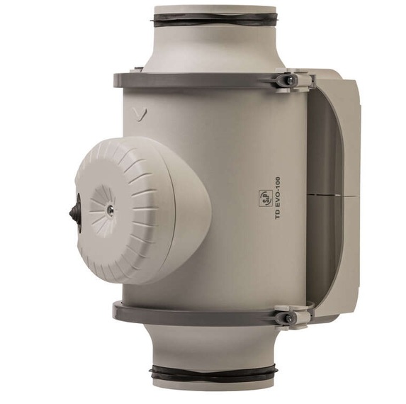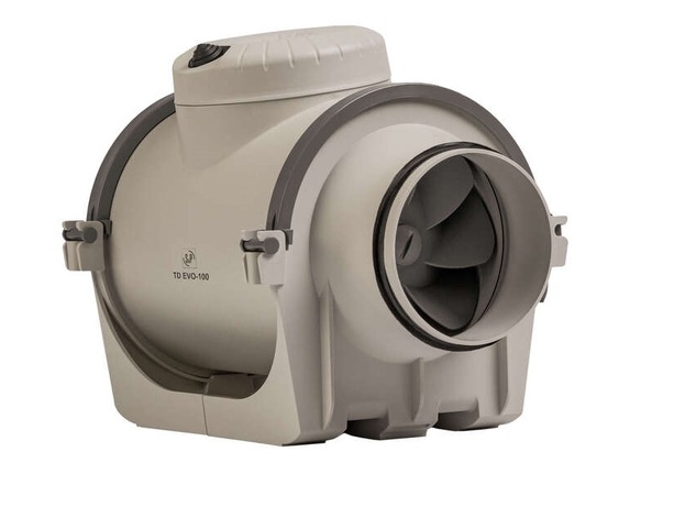 Круглые канальные вентиляторы новой серии Soler&Palau EVO показывают высокую производительность и низкий уровень шума, изготавливаются из прочного пластика. Уникальная конструкция вентилятора и крепежного кронштейна позволяют выполнять обслуживание без демонтажа воздуховодов. На корпусе установлены резиновые уплотнители для обеспечения воздухонепроницаемости, двигатель закреплен на резиновых сайлентблоках, что снижает вибрацию и шум. Вентиляторы имеют широкий диапазон температур работы от -20С° до +60С°. Класс защиты IP44, класс изоляции F. Максимальный расход воздуха TD EVO-125 VAR составляет 310м³/час. Модели TD-EVO-VAR оснащаются односкоростными электродвигателями переменного тока со встроенным регулятором скорости, с таймером и возможностью удаленного управления по сигналу 0-10В. Подключение к круглому воздуховоду диаметром 125мм.